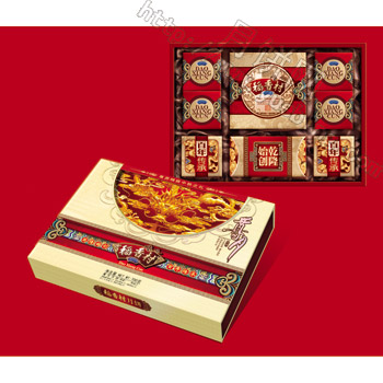 内装:200g双黄莲蓉月饼1个,75g红豆沙月饼2个,75g枣蓉月饼2个,50g五仁月饼2个,50g椰蓉月饼2个
